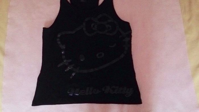 Débardeur noir Hello Kitty de chez H&M, Taille S donc convient pour une ado, vendu 2€.