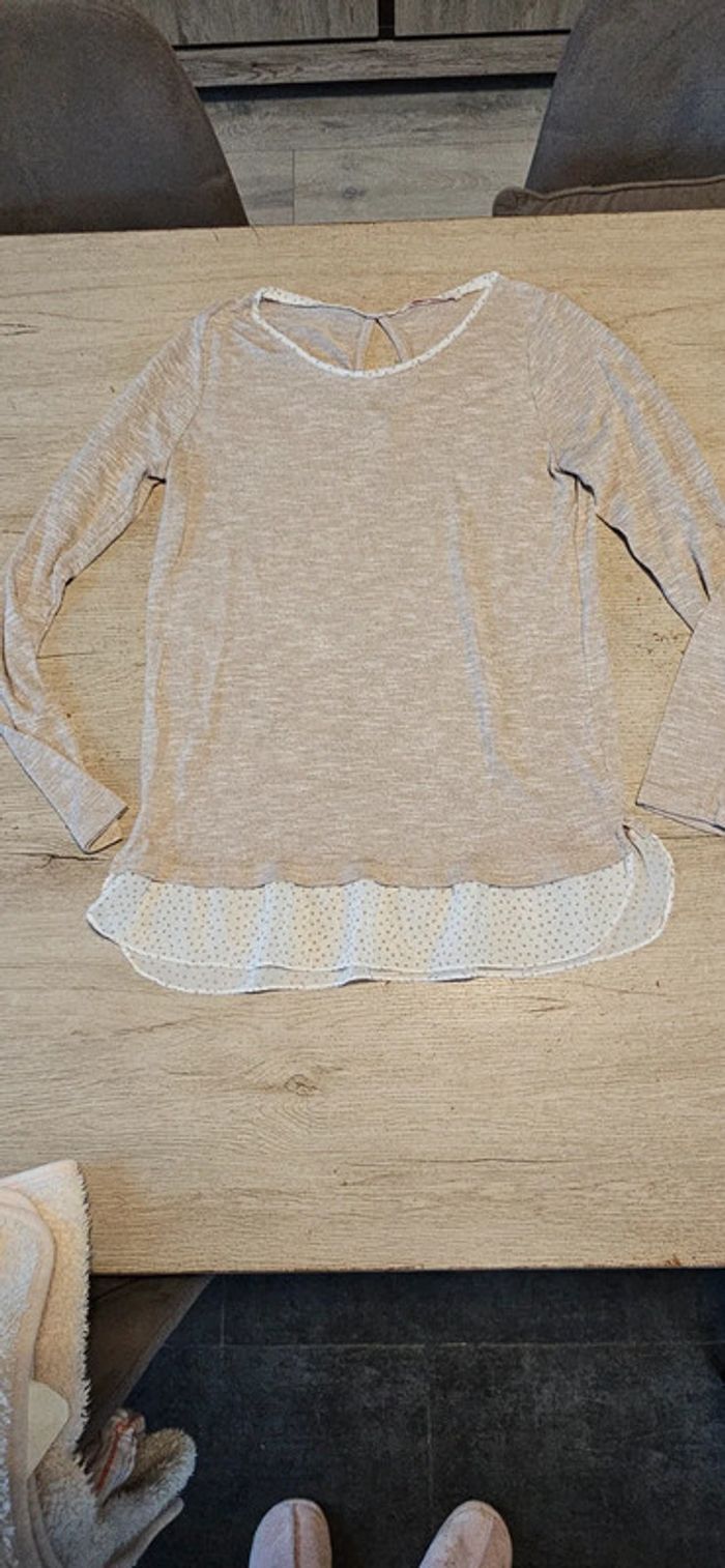 Pull léger avec bas de chemise, manches longues, beige, Camaieu, taille M - photo numéro 3