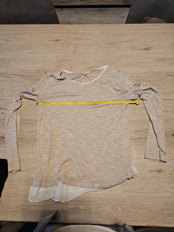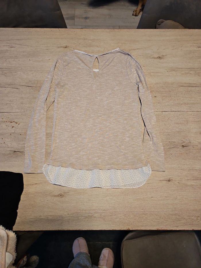 Pull léger avec bas de chemise, manches longues, beige, Camaieu, taille M - photo numéro 4