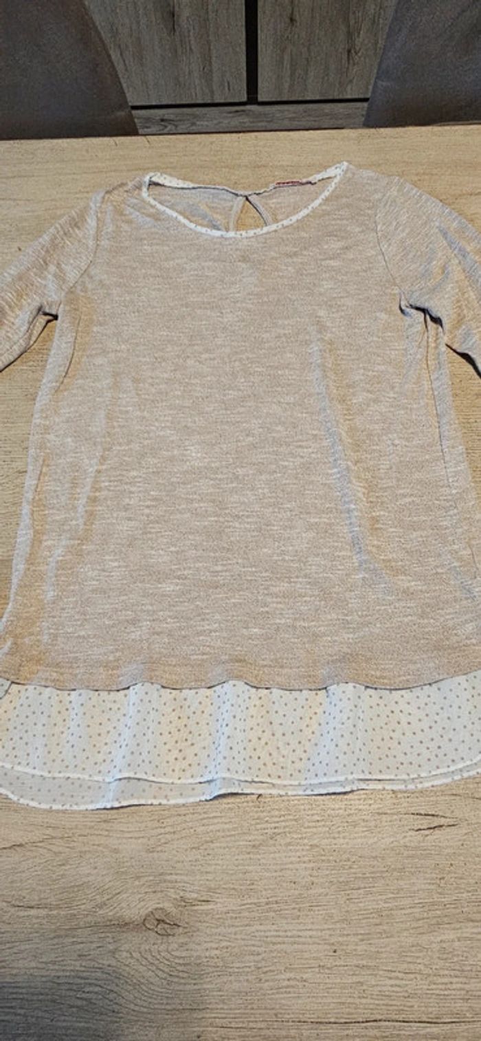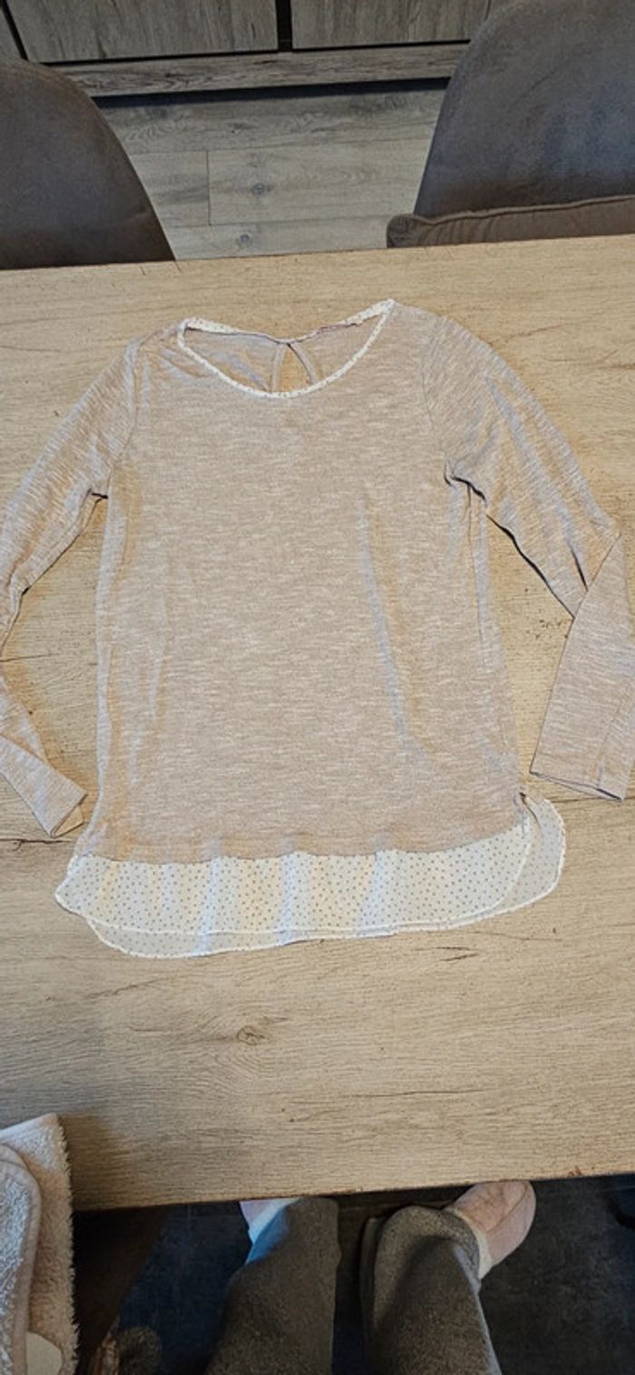 Pull léger avec bas de chemise, manches longues, beige, Camaieu, taille M - photo numéro 2