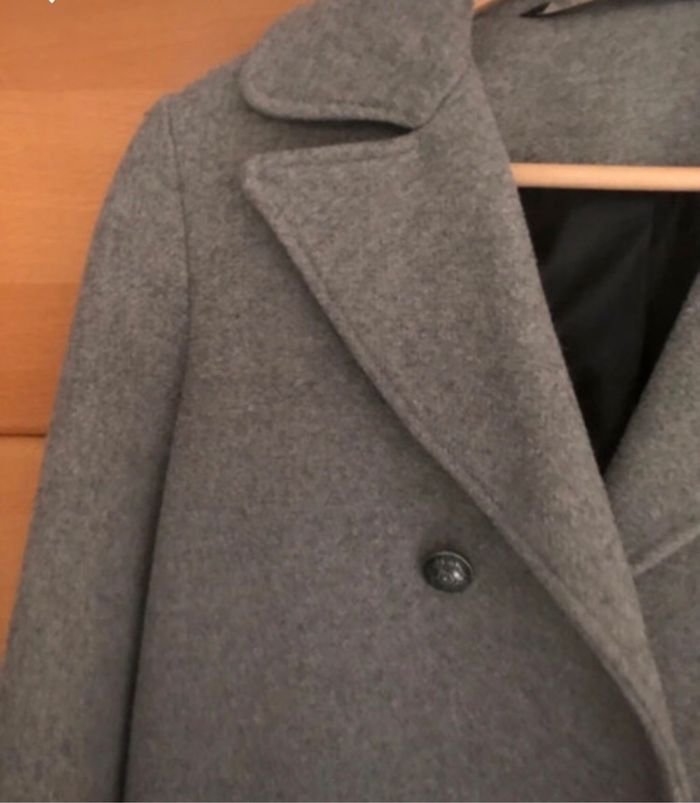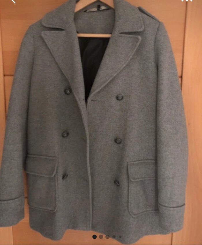 Caban gris Zara avec 2 poches sur le devant, doublure et plis dans le dos