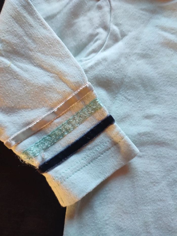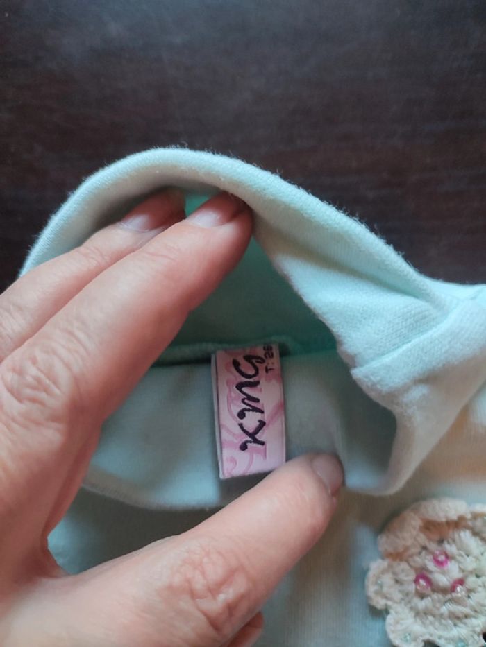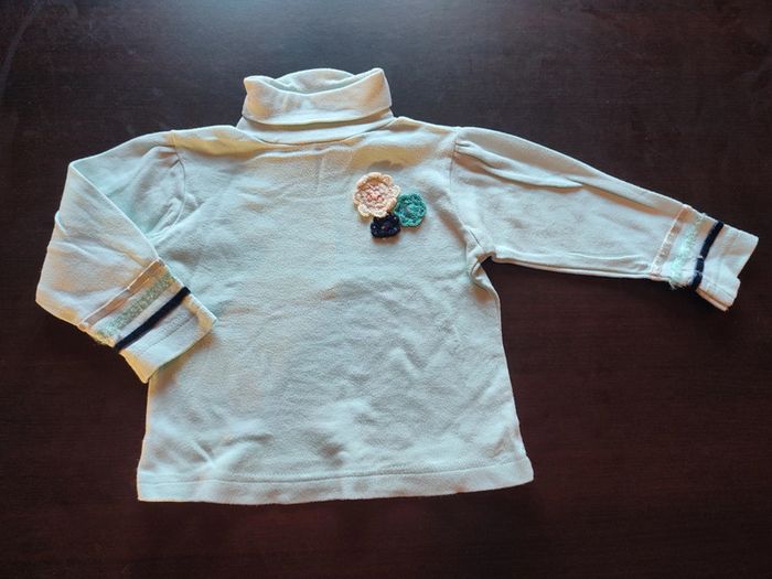 Haut KMG Turquoise avec application sur la poitrine Col roulé Manches longues 100% Coton TAILLE 26 MOIS BON ETAT Allez voir mes autres ventes!