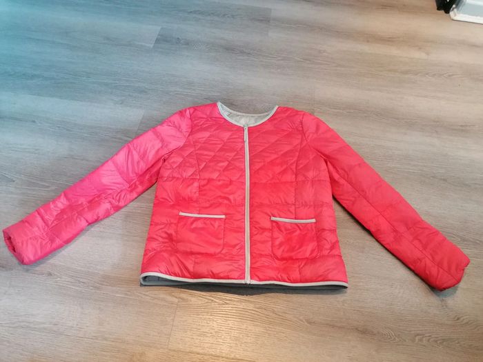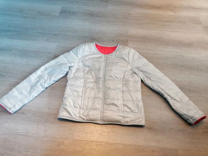 Bonjour, je vends cette doudoune légère réversible beige/rose de la marque Comptoir des Cotonniers taille M en bon état (voir col). Lavé maison non fumeur.