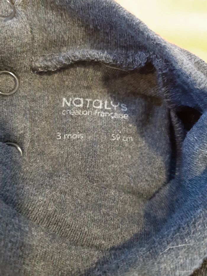 Body gris foncé de la marque Natalys en taille 3 mois Coton épais et col montant. Manches longues. Fermeture par pressions au dos et à l’entrejambe. excellent état, très peu porté N'hésitez pas à faire un lot pour amortir les frais de port et les frais de protection acheteur. 📦 😊 Vêtements de la taille naissance à la taille 4 ans disponibles. Jouets et livres disponibles.