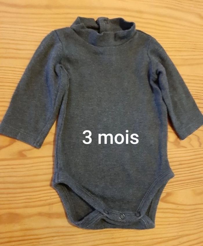 Body mixte gris foncé - garçon / fille - manches longues et col montant - coton épais - Natalys - 3 mois - photo numéro 1