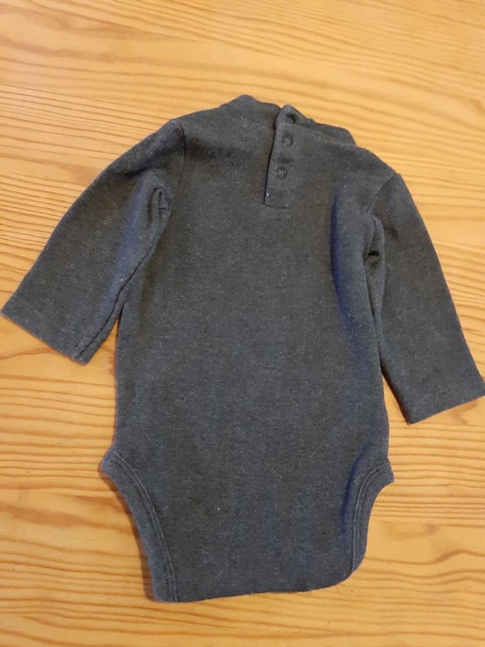 Body mixte gris foncé - garçon / fille - manches longues et col montant - coton épais - Natalys - 3 mois - photo numéro 3