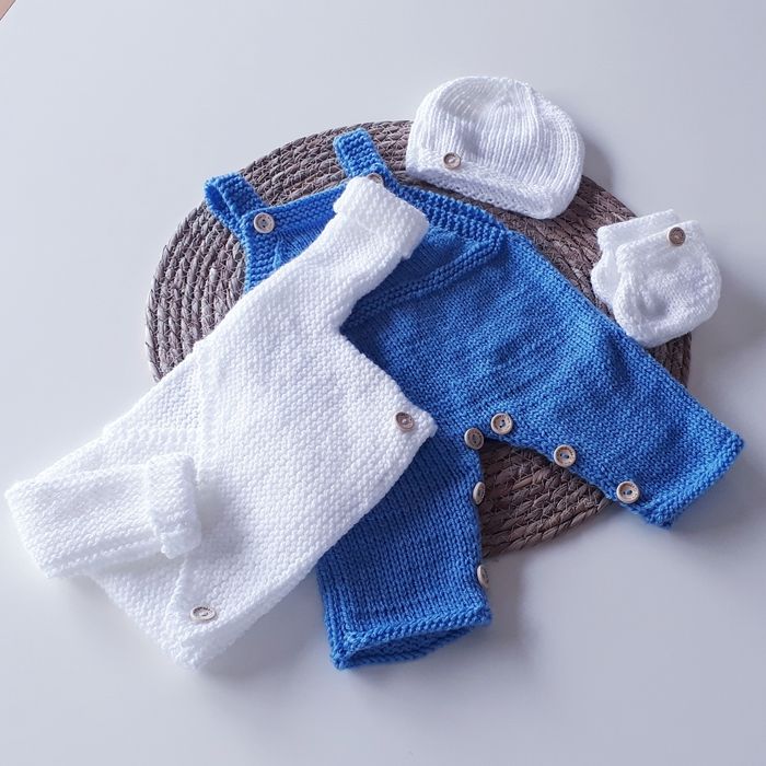 Ensemble salopette brassière gilet kimono cache coeur chaussons et bonnet tricot bébé naissance garçon bleu - photo numéro 1
