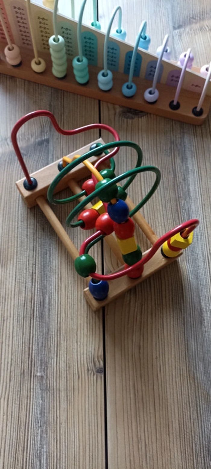 Petit jeu en bois grosses perles Taille environ 20cms x 20cms h x 10cms largeur