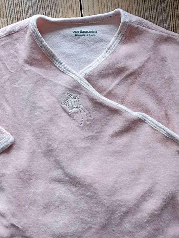 Pyjama rose 1 pièce - devant croisé et noué et derrière élastique voir photos Boutons pressions #prisci59150fille12mois