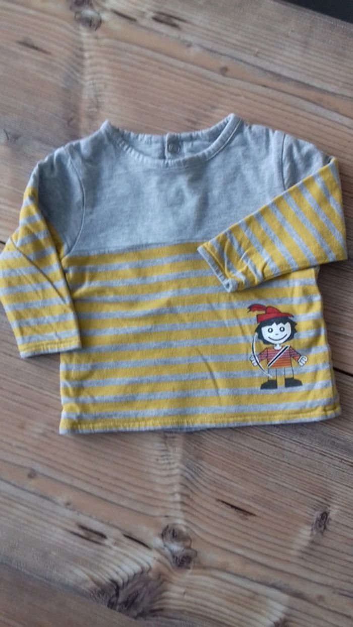 T shirt manches longues Orchestra taille 6 mois Gris rayures jaunes et dessin "archer" #prisci59150garçon6mois