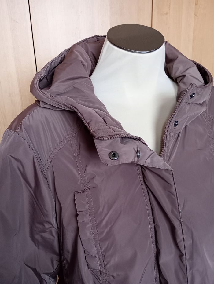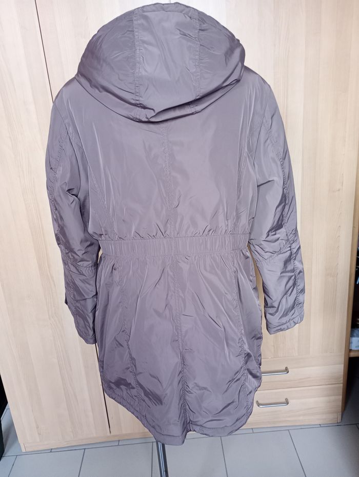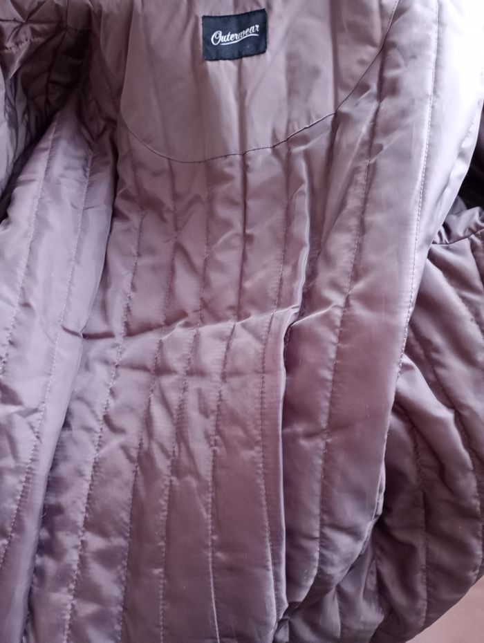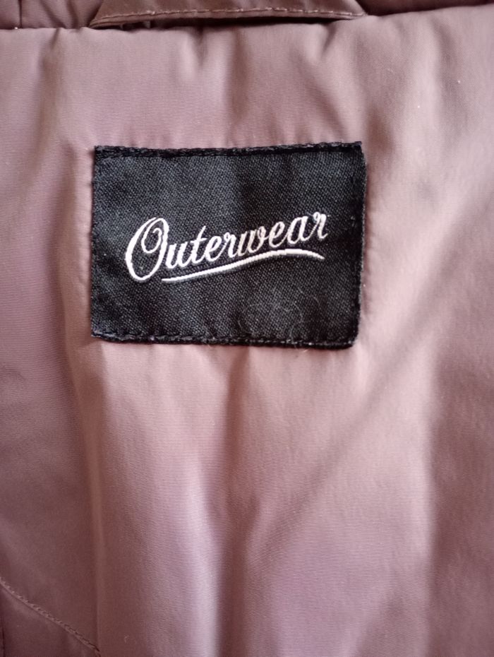 Manteau chaud couleur marron glacé avec capuche. Avec légers reflets irisés. Pas de taille mais devrait correspondre à un 44. Marque : Outewear. Longueur : 85 cm Largeur entre aisselles : 54 cm Longueur manches : 64 cm Très bon état.