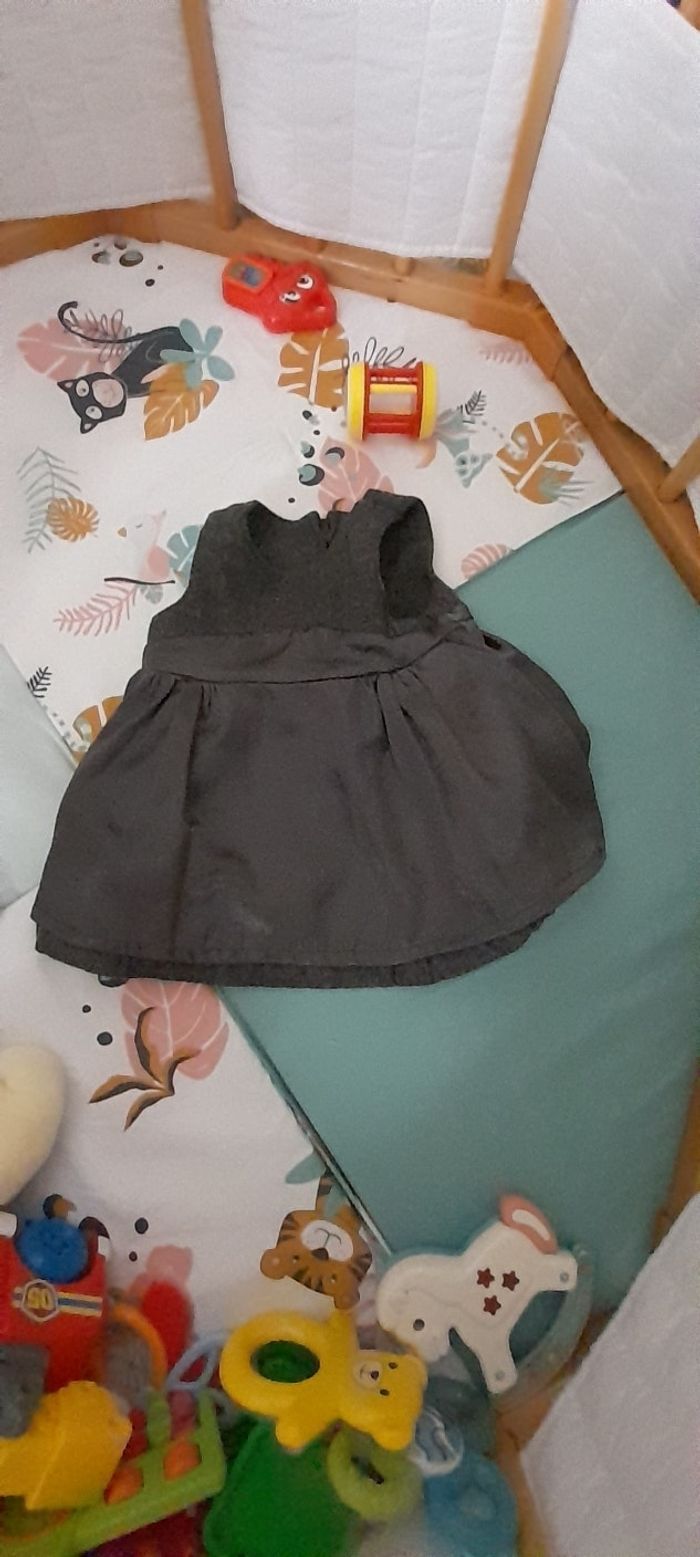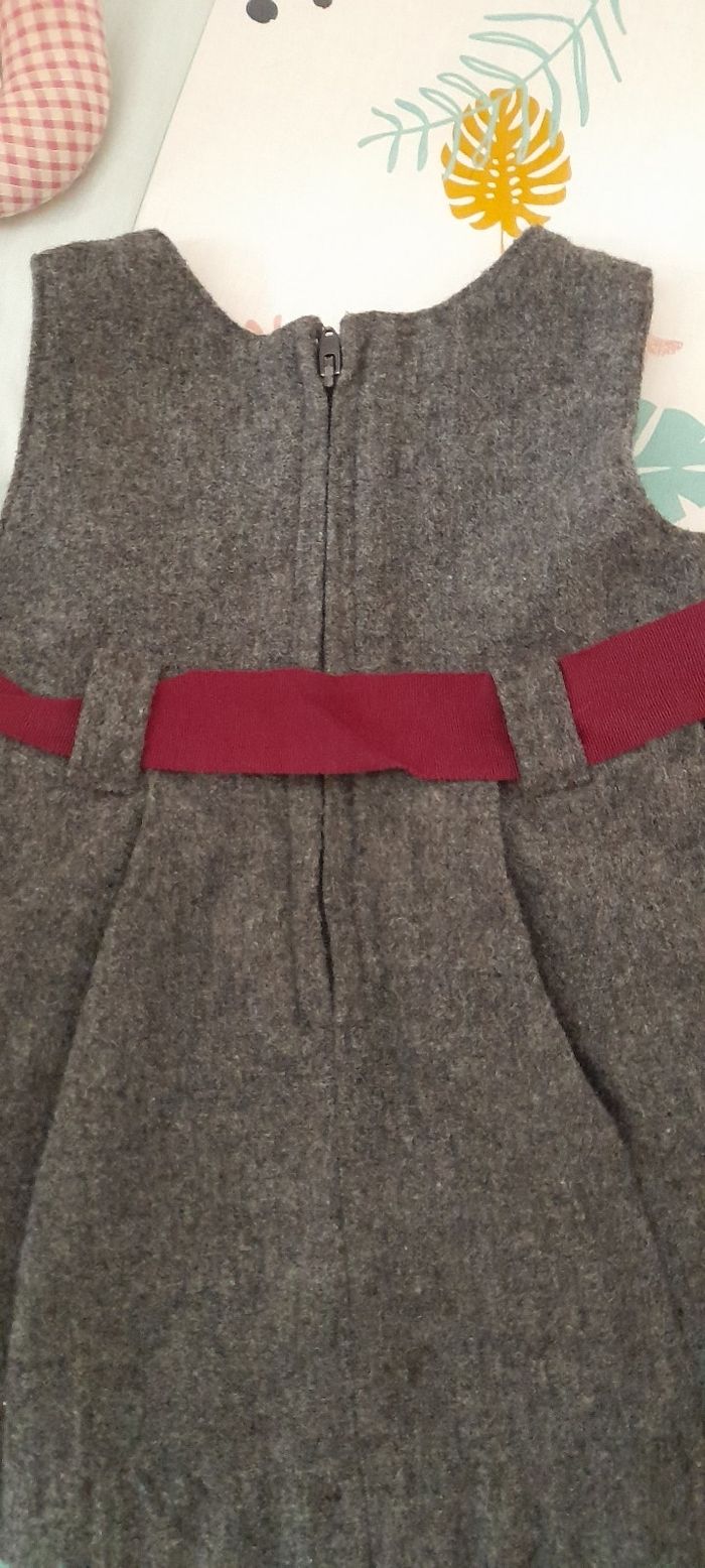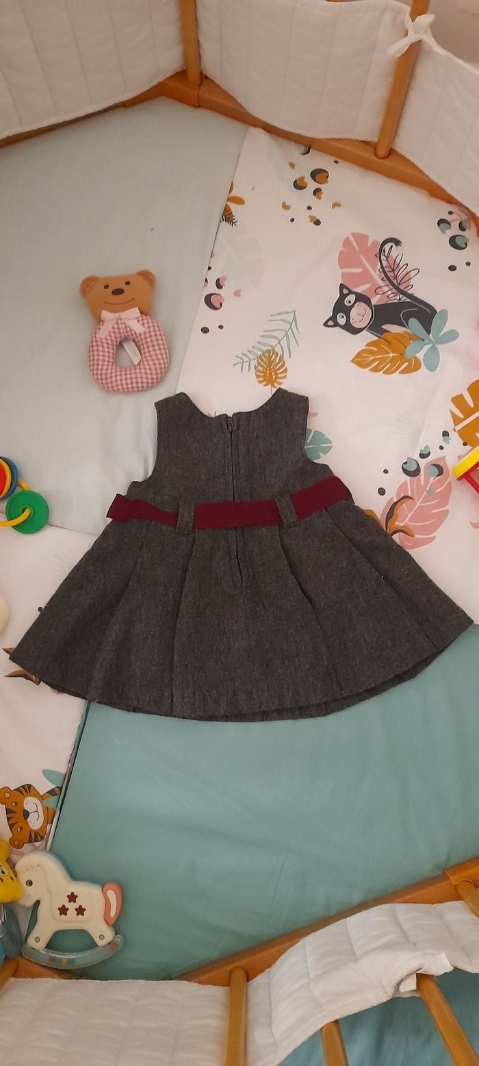 Robe T 6 mois Marque H&M Couleur gris anthracite Ceinture cordon de couleur bordeaux Sans manches Attache fermeture éclair à l'arrière Doublé grise Quasi neuf
