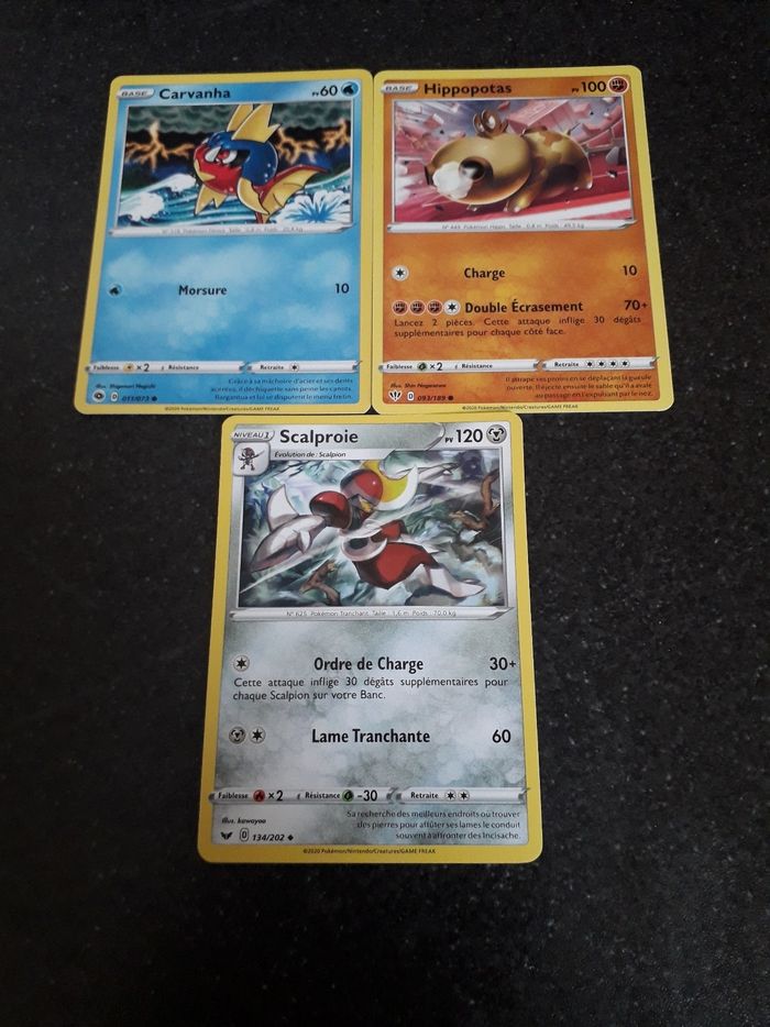 Carvanha + Hippopotas + Scalproie lot de 3carte Pokémon neuves