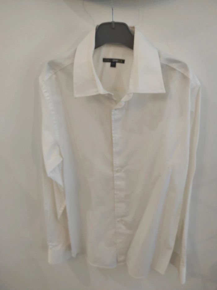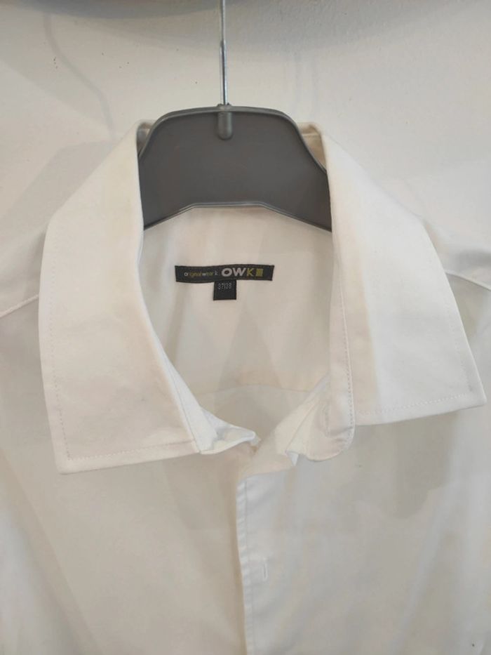 Chemise homme manches longues blanches Marque OWK Taille 37/38 Col légèrement jaunie dû au stockage donc ça partira au lavage ➡️ Réduction sur les lots, n'hésitez pas à parcourir le dressing je vends plein de vêtements homme 👌