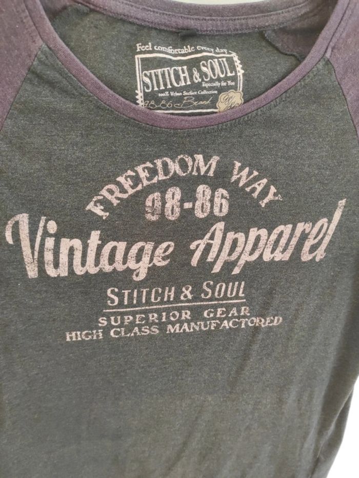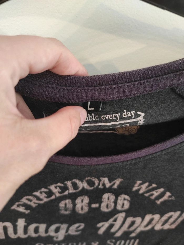 T-shirt homme gris et mauve inscription "vintage" Taille L mais taille un peu plus petit Marque Stitch & Soul