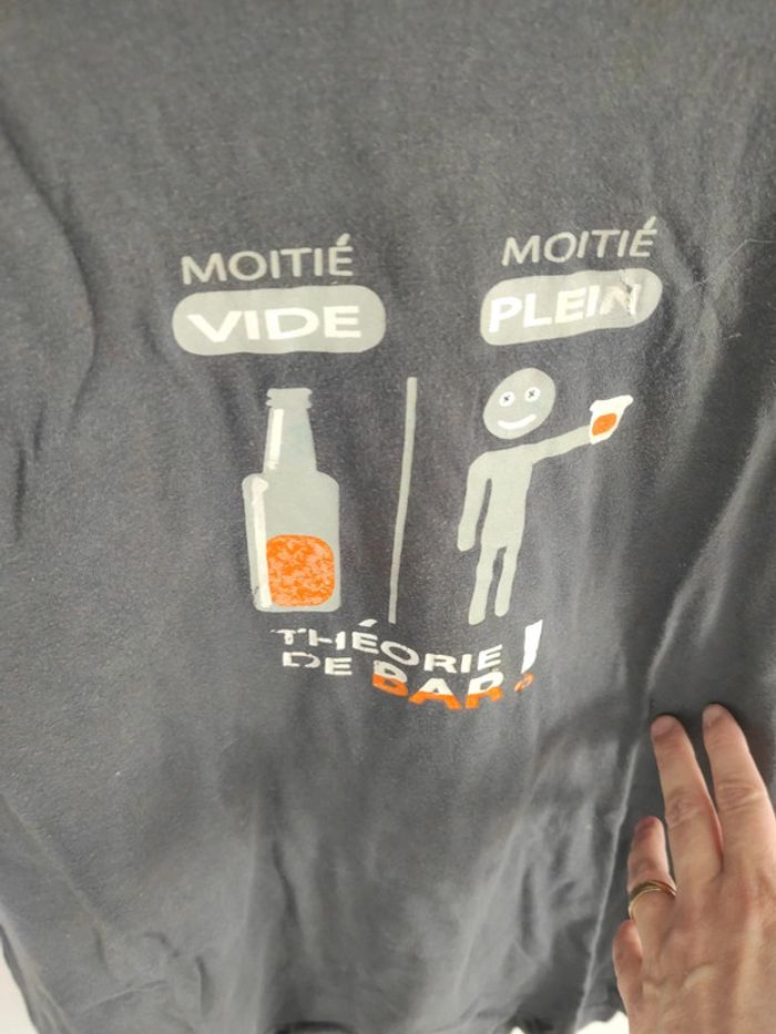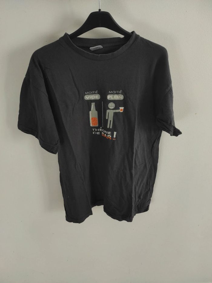 T-shirt gris humoristique "théorie de bar" Taille S Le flocage est décollé par endroit ➡️ Réduction sur les lots, n'hésitez pas à parcourir le dressing je vends plein de vêtements homme 👌