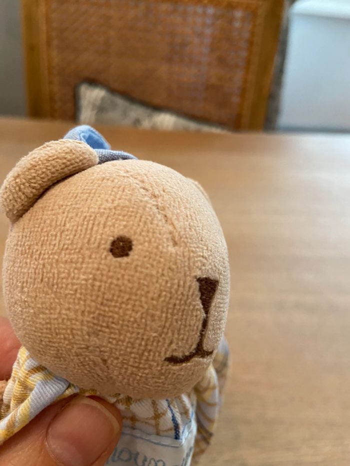 Petit doudou accompagné de son petit carré gaze de coton escamotable Nounours état neuf - photo numéro 16