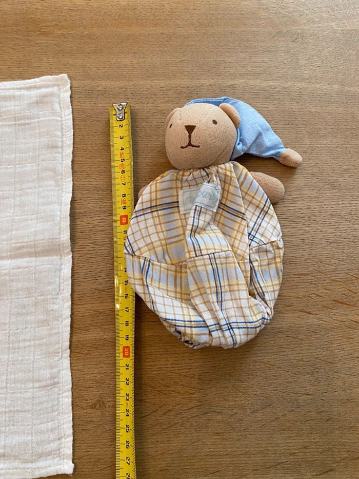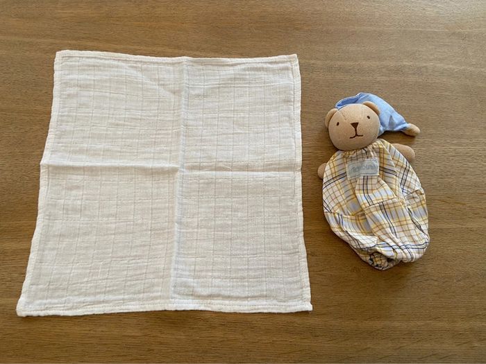 Petit doudou accompagné de son petit carré gaze de coton escamotable Nounours état neuf - photo numéro 14