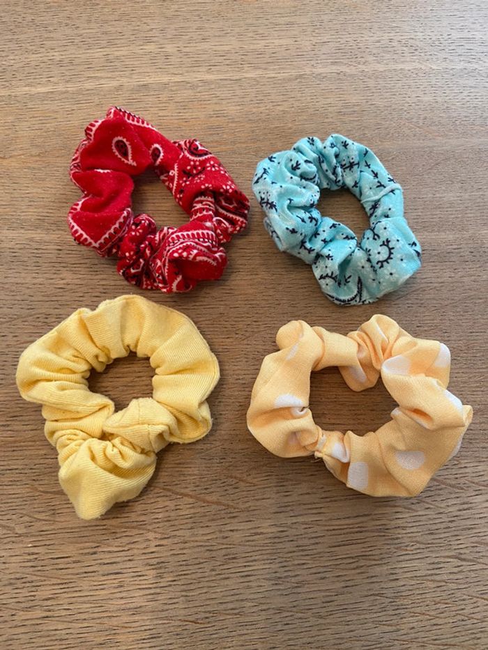 Lot de quatre chouchous bandana, à pois et jaune uni