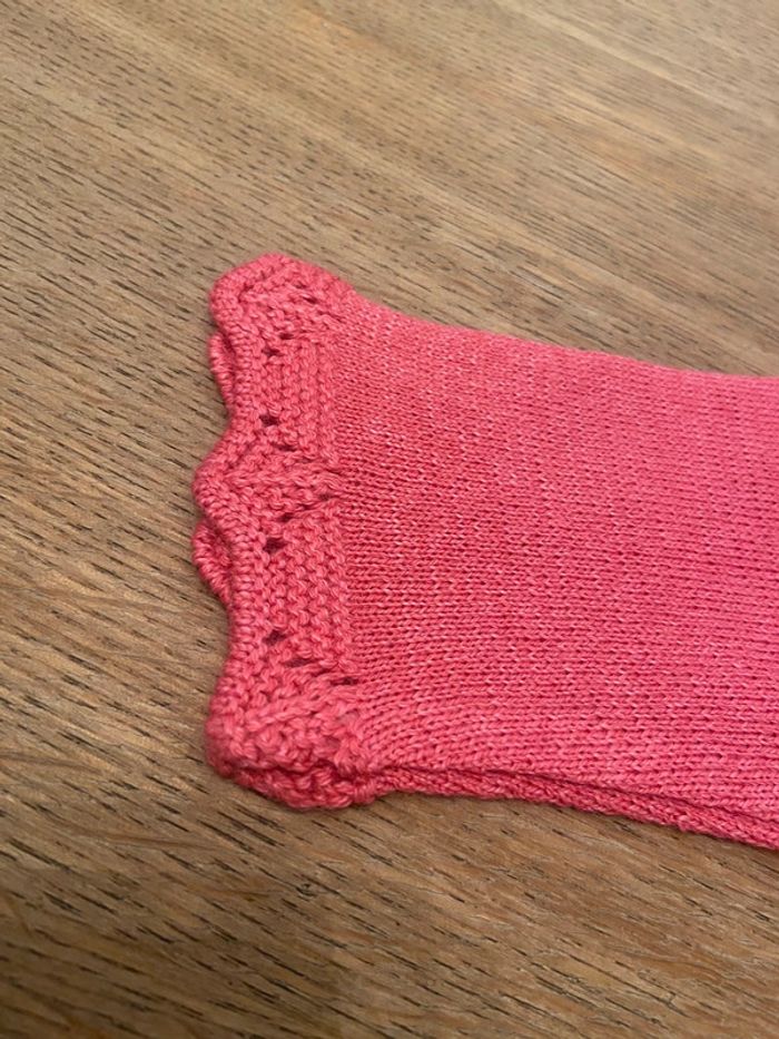 Jamais porté. Très lumineux. Maille très travaillée sur les manches, l’encolure et le bas. Jersey tout doux coton et acrylique.