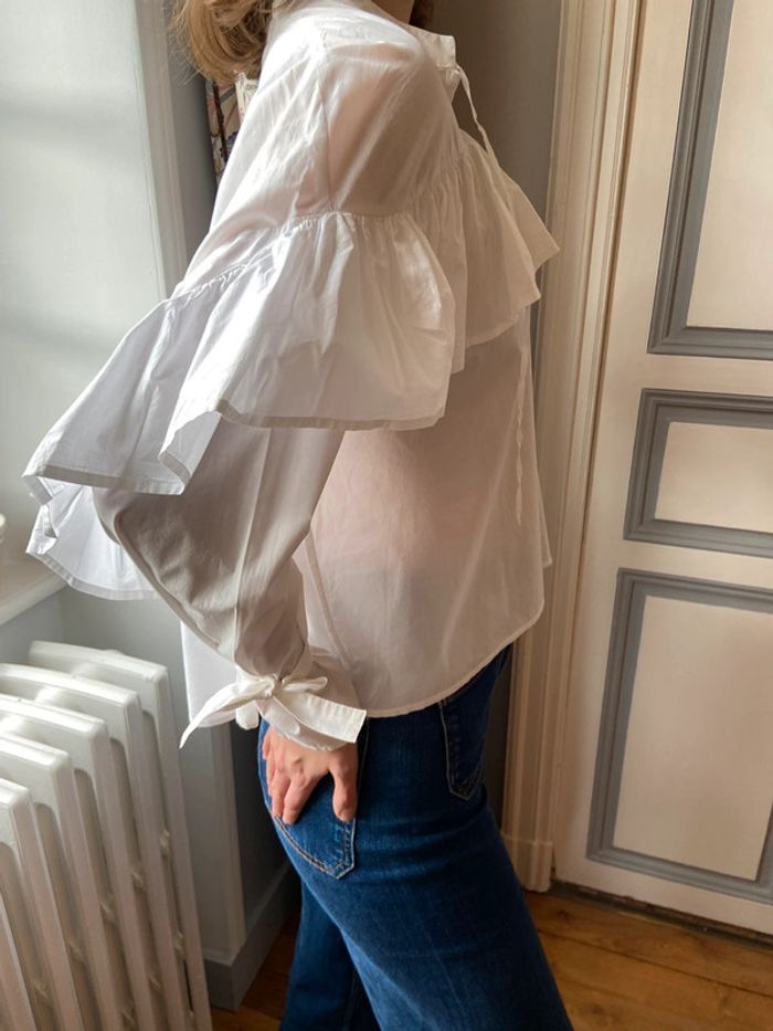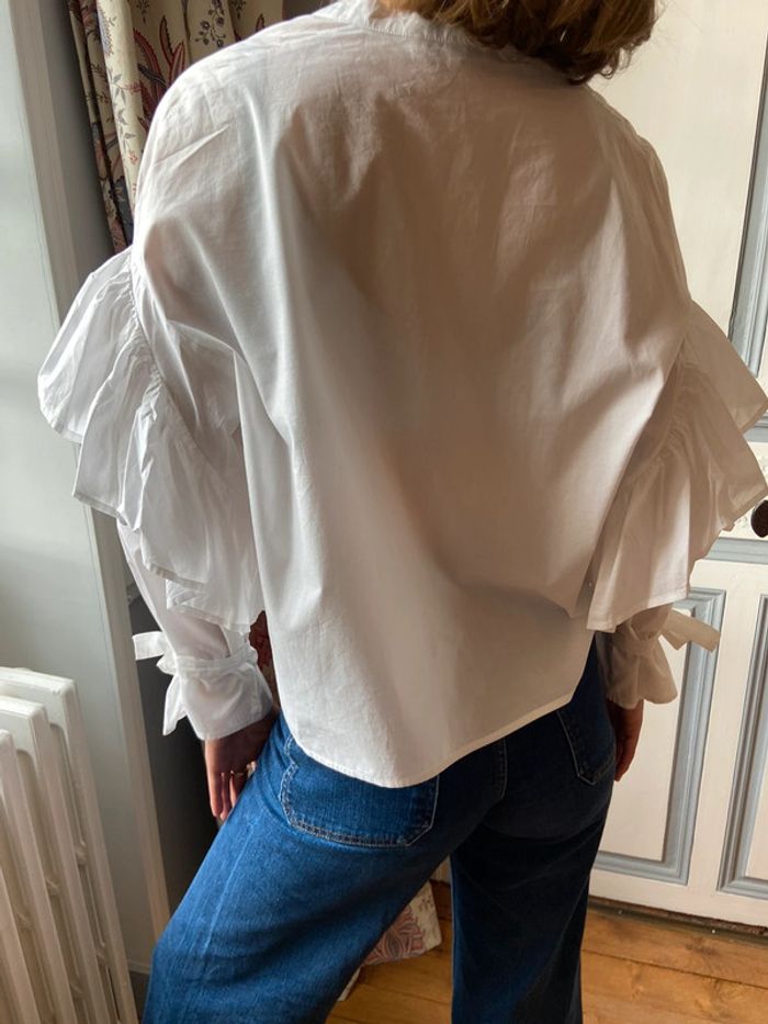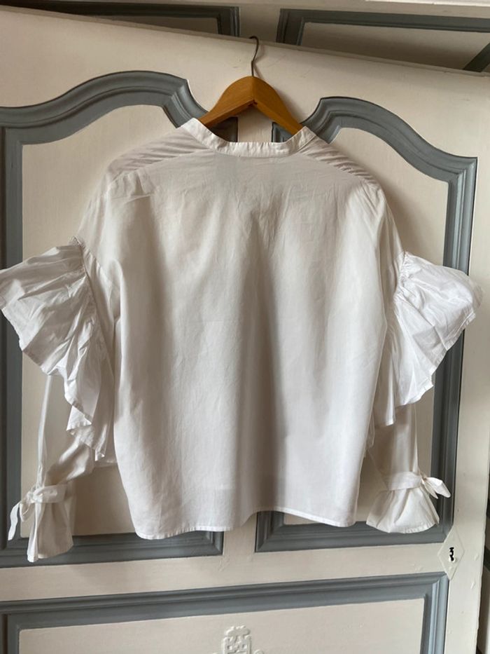 Chemisier volanté Maje blanc taille 2 - photo numéro 7