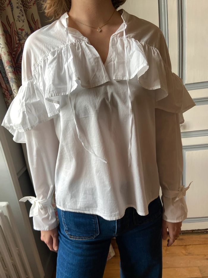 Chemisier volanté Maje blanc taille 2 - photo numéro 1