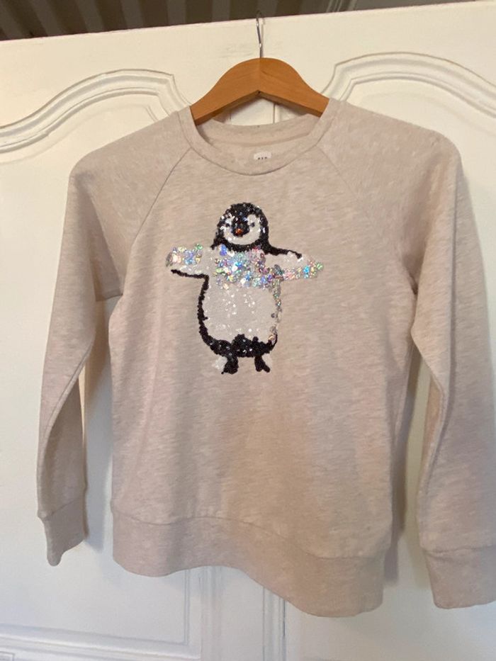 Sweat-shirt Gap beige application pingouin pailleté taille 10 ans