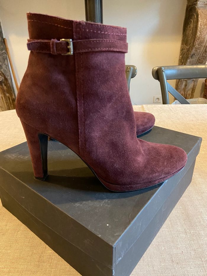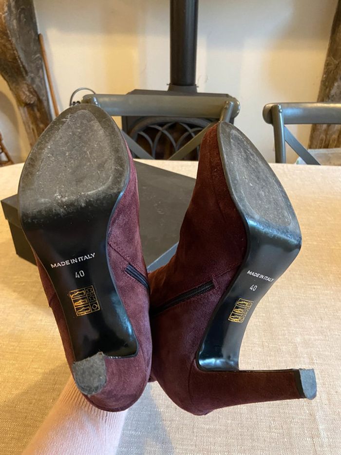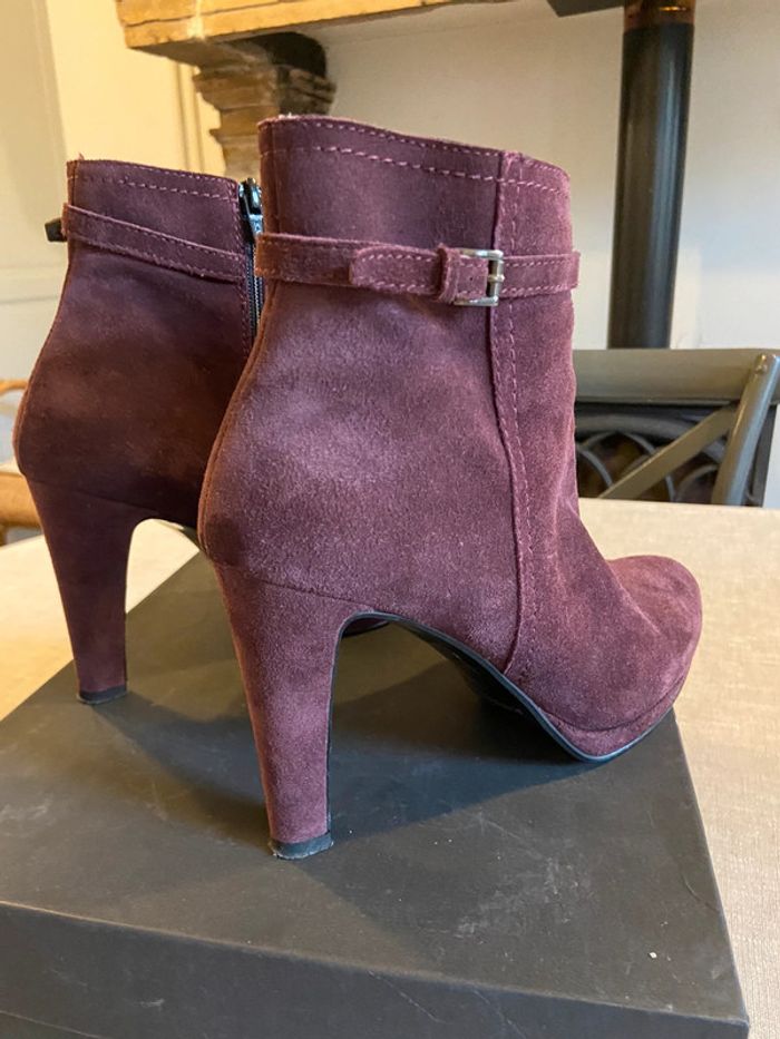 Bottines en daim bordeaux talons 10 cm et plateforme taille 40 - photo numéro 3