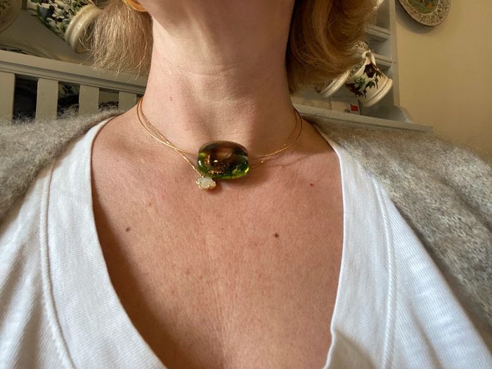 Collier ras de cou en métal plaqué or et verre soufflé,neuf. - photo numéro 10
