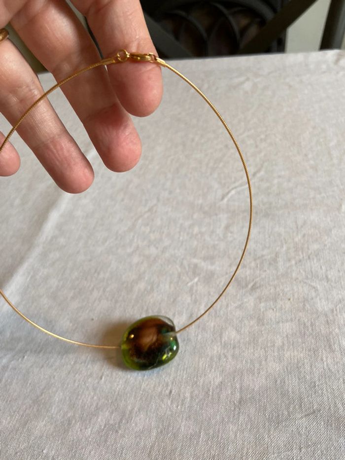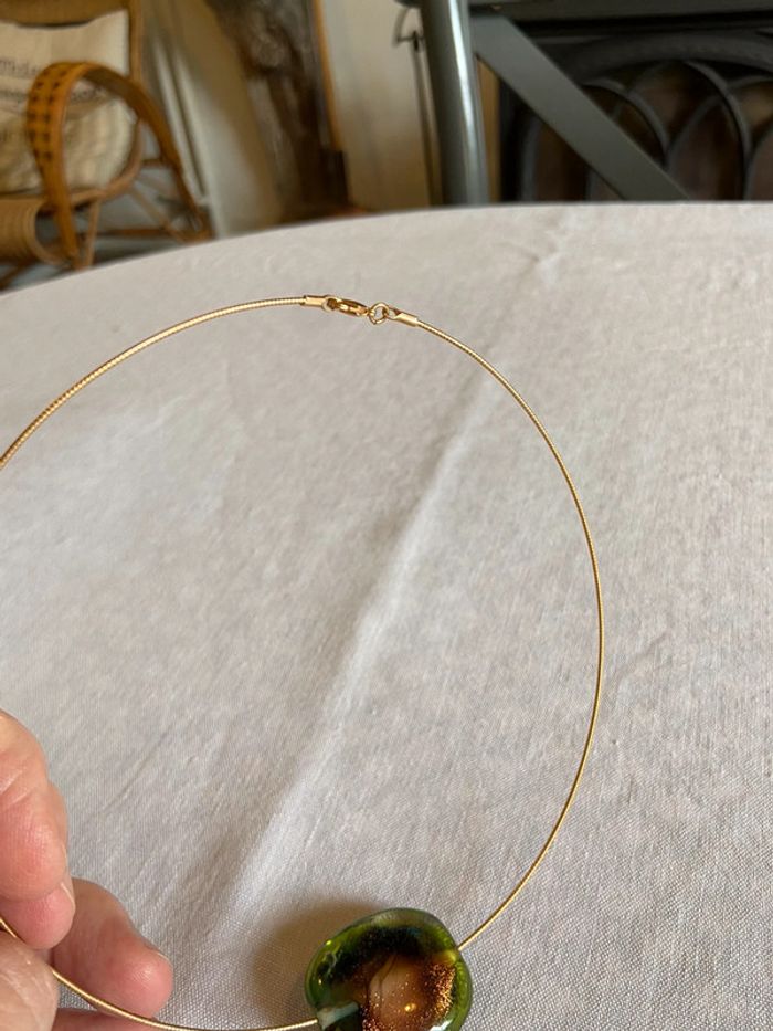 Collier ras de cou en métal plaqué or et verre soufflé,neuf. - photo numéro 6