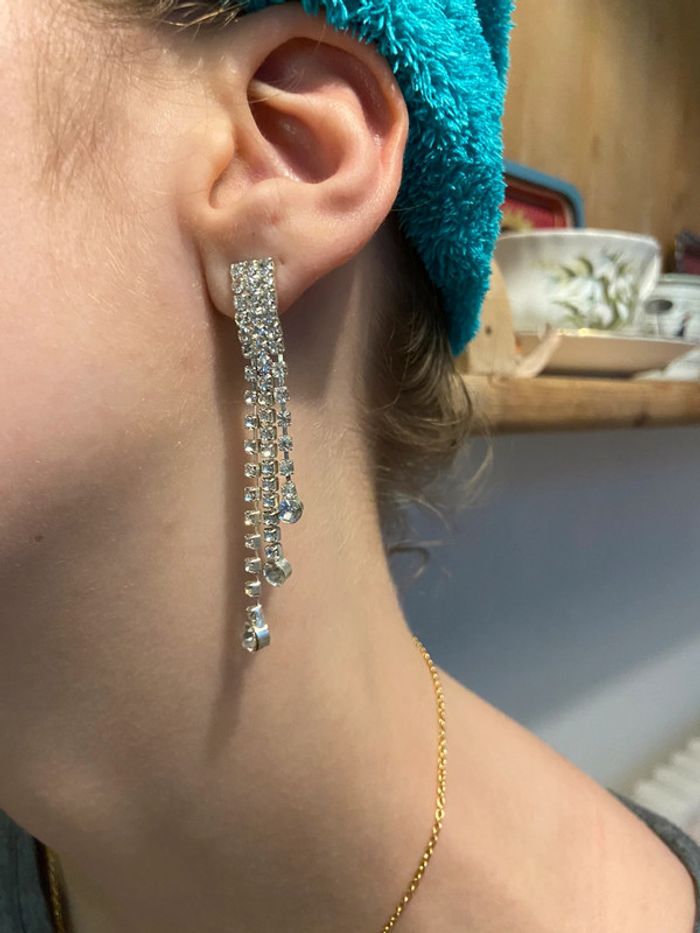 Boucles d’oreilles longues en strass - photo numéro 1