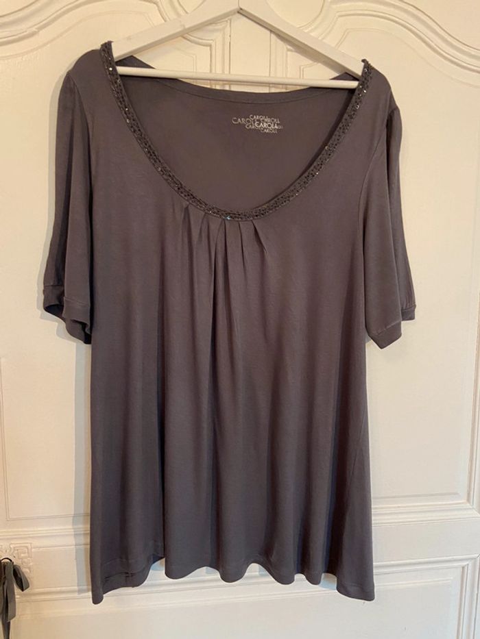 Top Caroll gris encolure perlée taille 42 - photo numéro 1