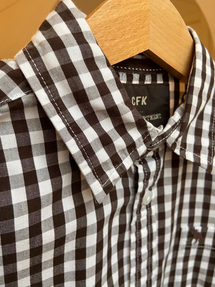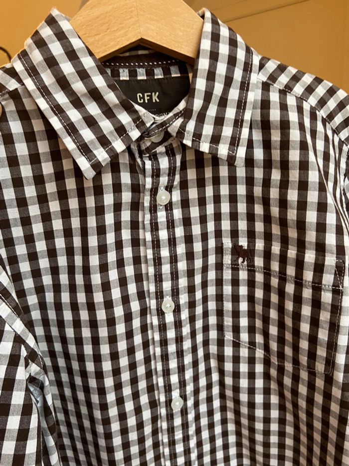 Chemise en Vichy marron et blanc Monoprix 8 ans