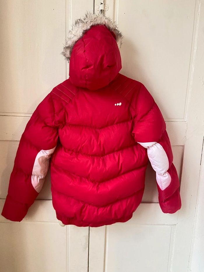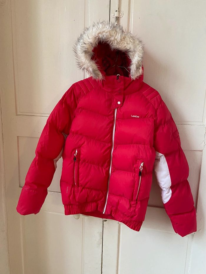 Blouson de ski fuschia et blanc Décathlon 14 ans .