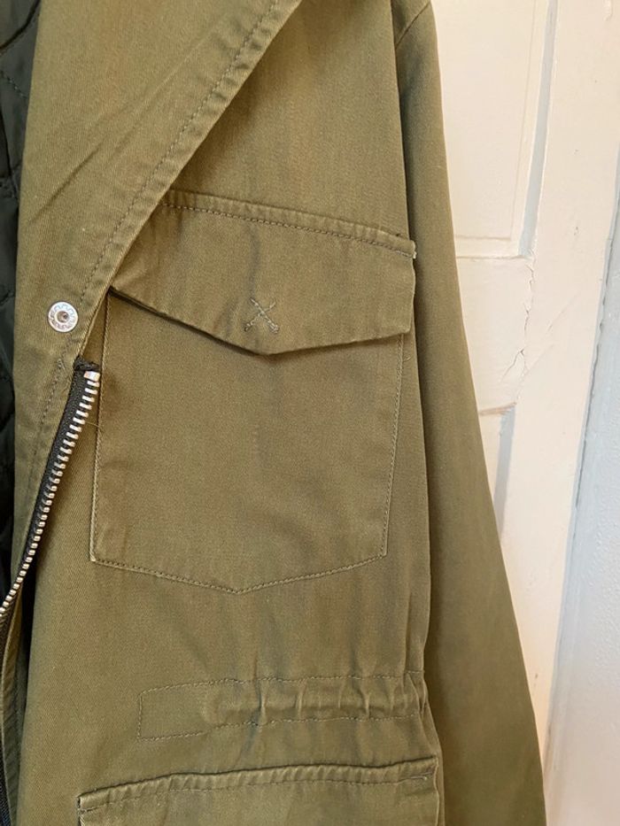 Veste neuve kaki broderie dos col fourrure amovible Pull and Bear taille M - photo numéro 13