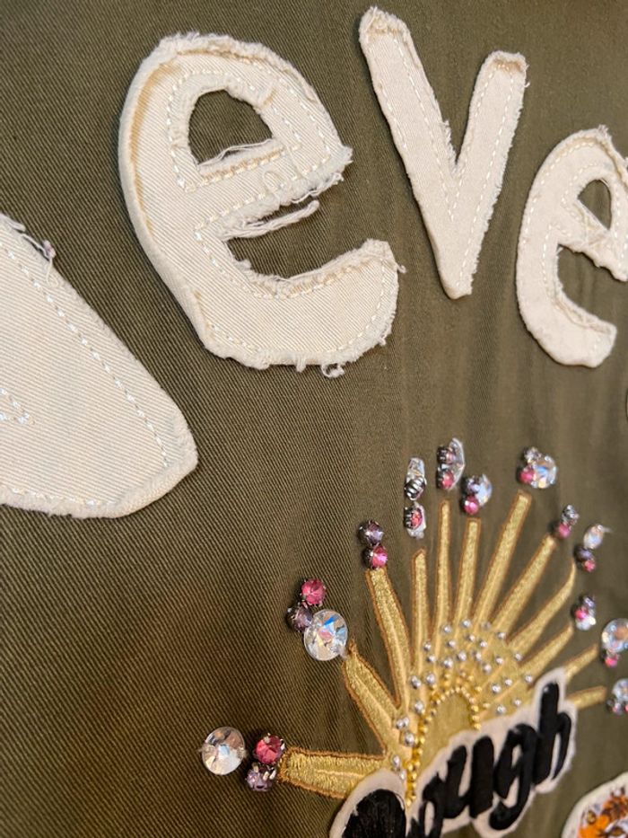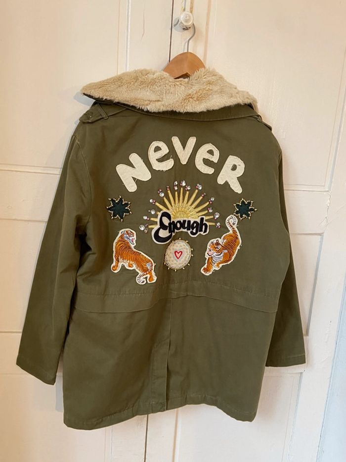 Veste neuve kaki broderie dos col fourrure amovible Pull and Bear taille M - photo numéro 20