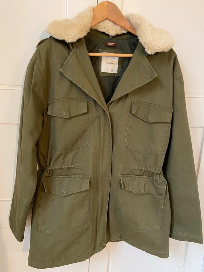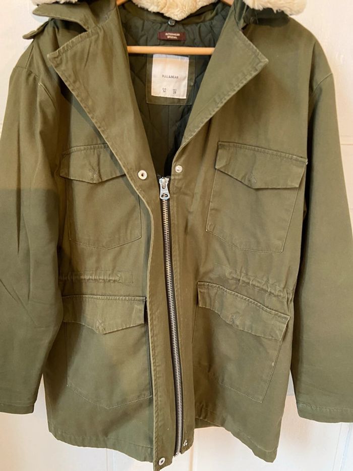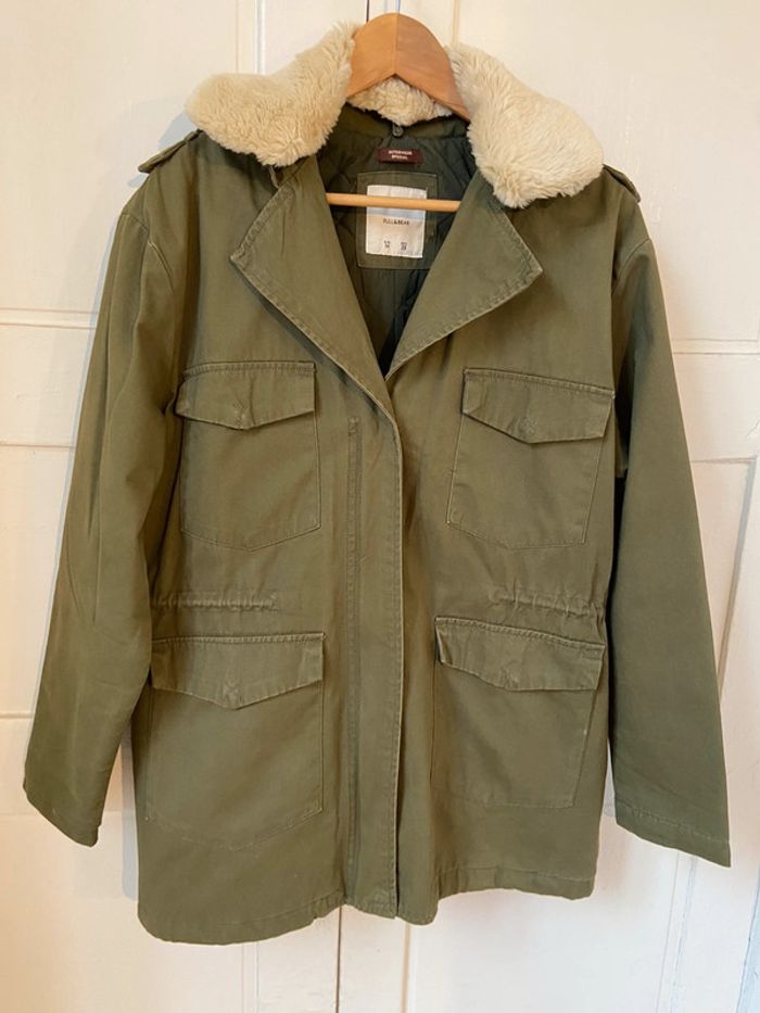 Veste neuve kaki broderie dos col fourrure amovible Pull and Bear taille M - photo numéro 1