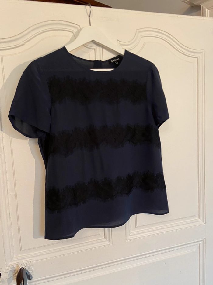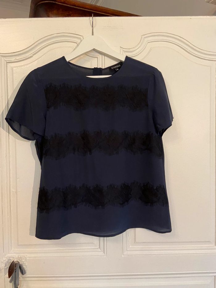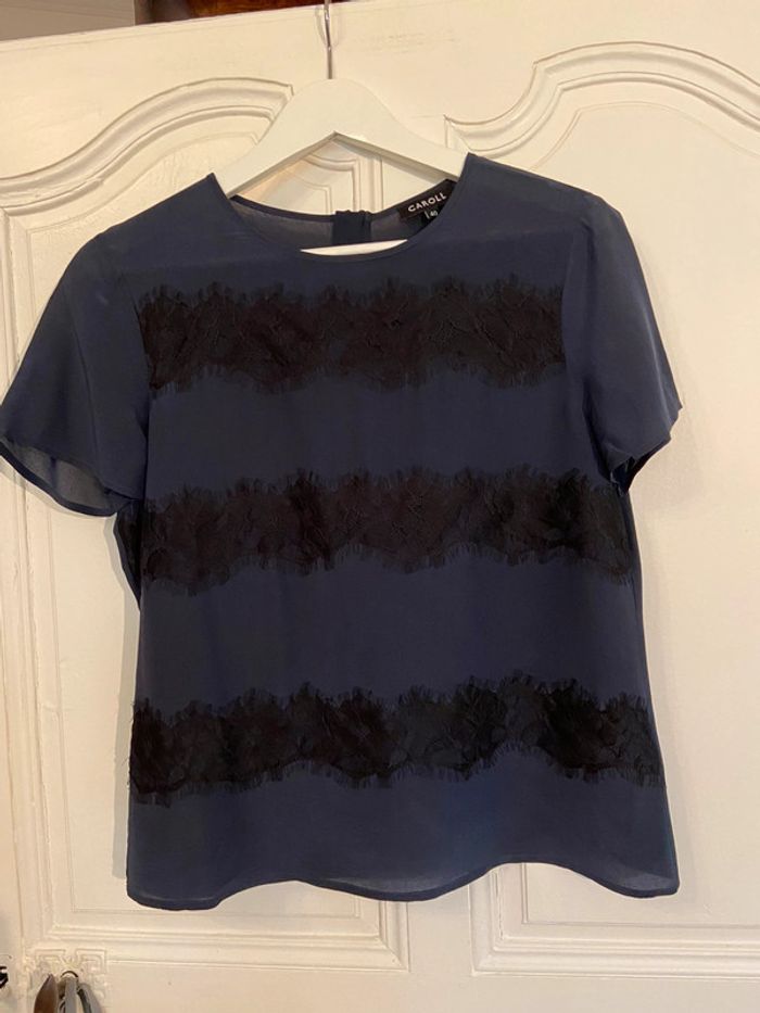 Top manches courtes en soie et dentelle Caroll taille 40 - photo numéro 1