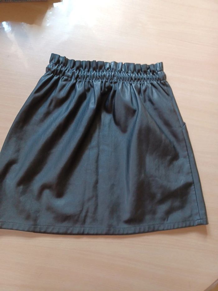 Jupe simili cuir. 2 poches. Élastique à la taille.