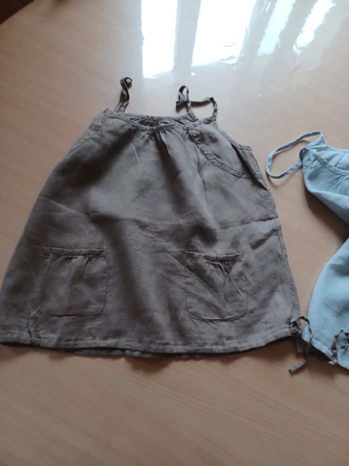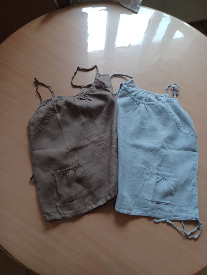 Lot 2 blouses à bretelles. 2 poches. Cordon à la base. Lin.