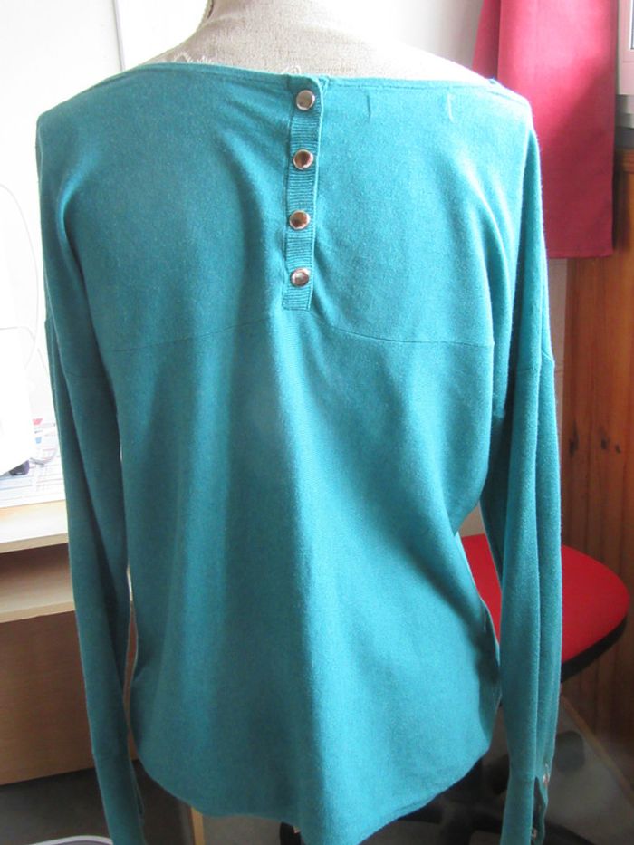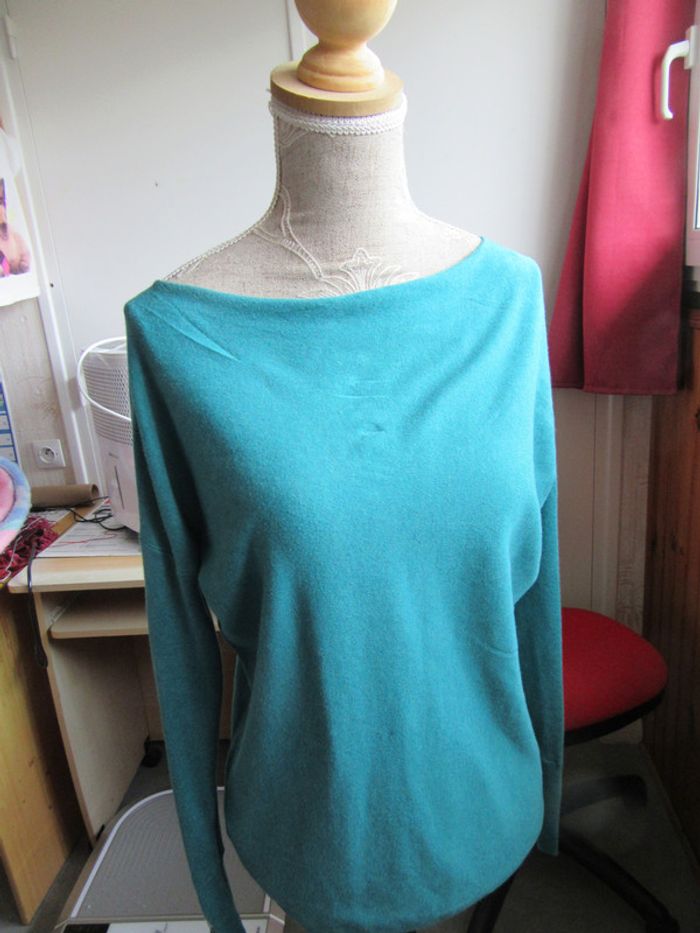pull promod. 60 coton 40 viscose. pressions sur les manches et dans le dos. couleur émeraude