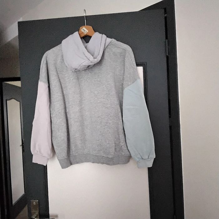 Sweat à capuche femme taille S JENNYFER SMILEY 1 poche ventrale 60% polyester et 40% coton 1 manche bleu ciel et 1 manche rose pâle #lamadelon_femme_36