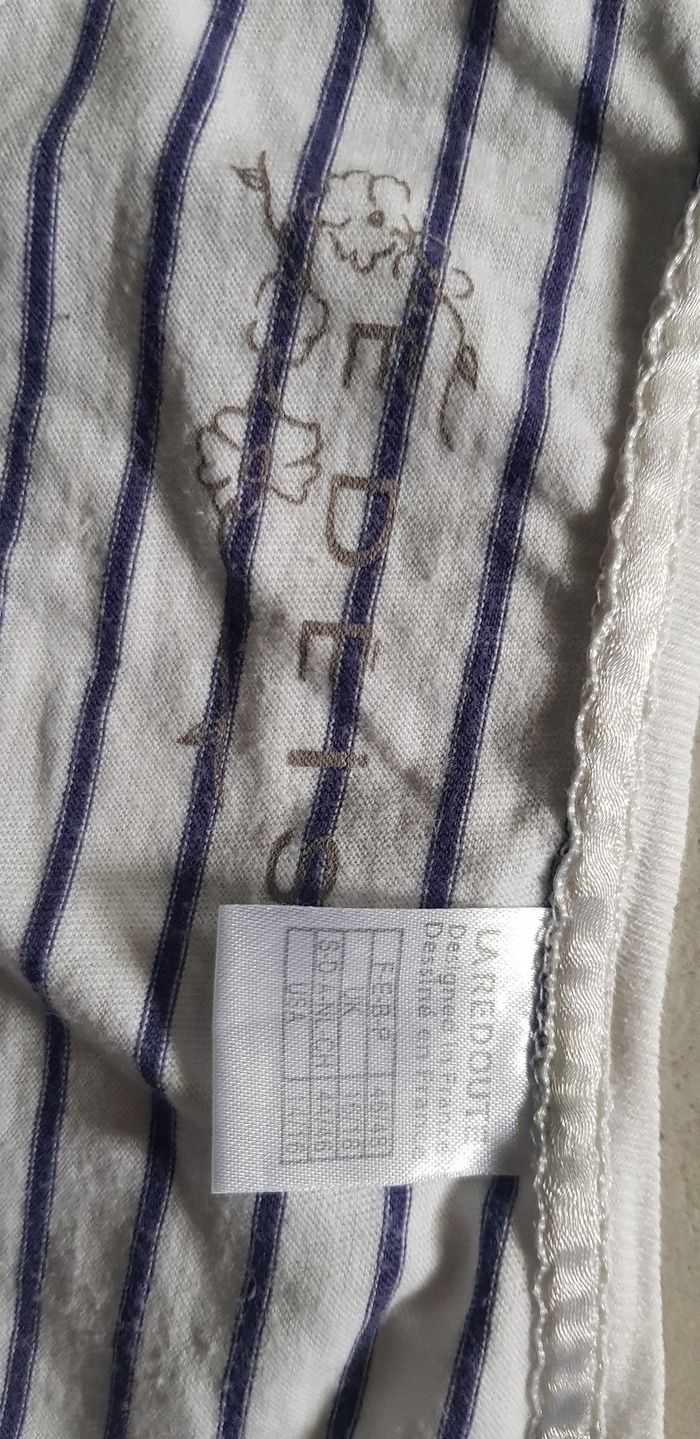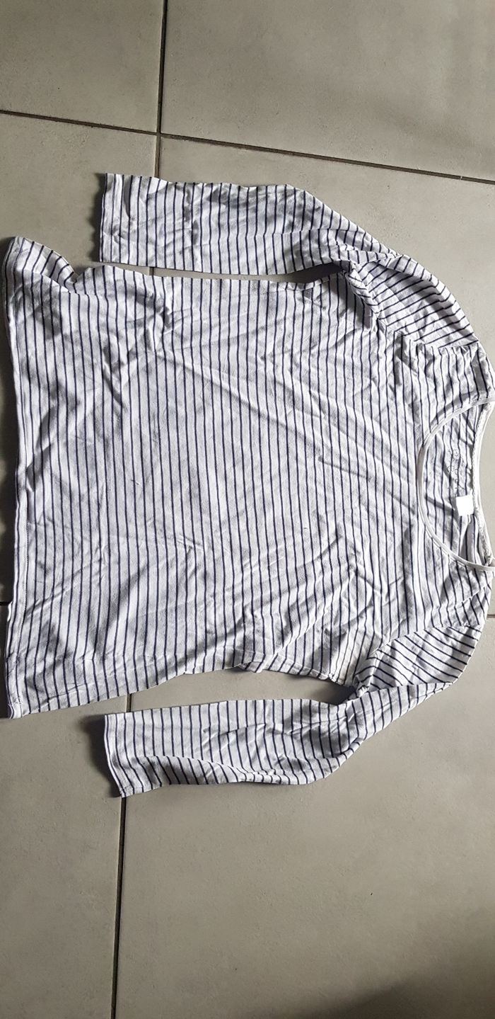 Vends tshirt femme blanc rayé bleu manche longue, taille 46/48, marque la redoute bon état