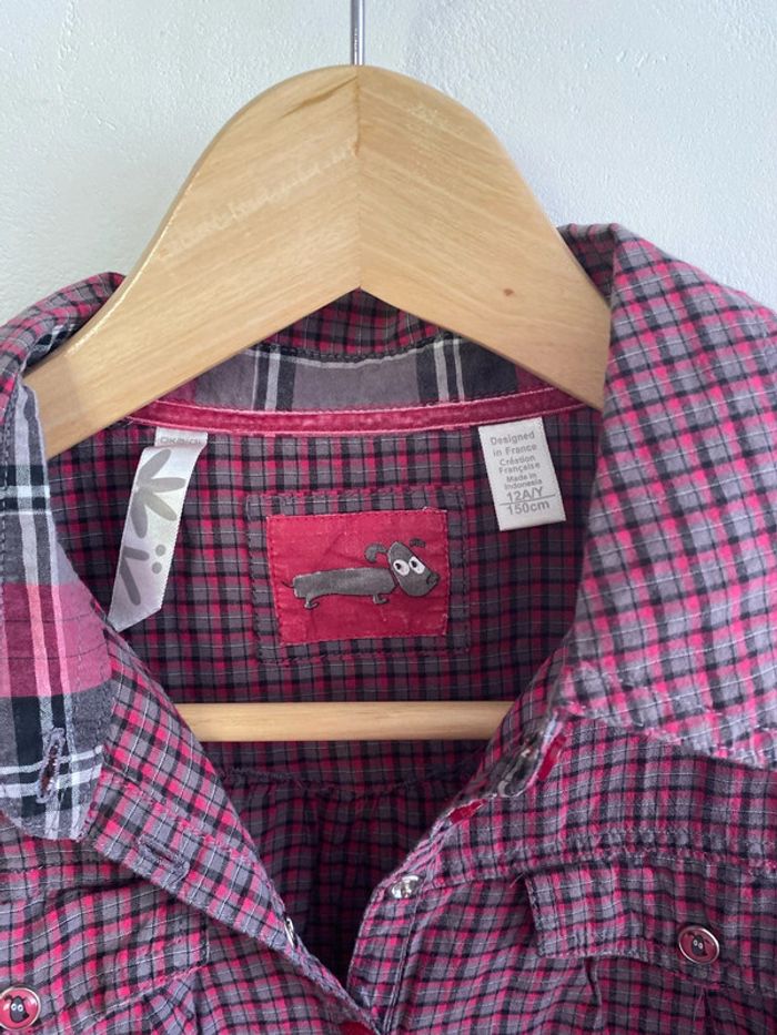 Chemise enfant à carreaux, rose et noir, porté quelques fois. Taille : 12 ans Marque : okaidi Pour plus de renseignements, contactez moi en privé.