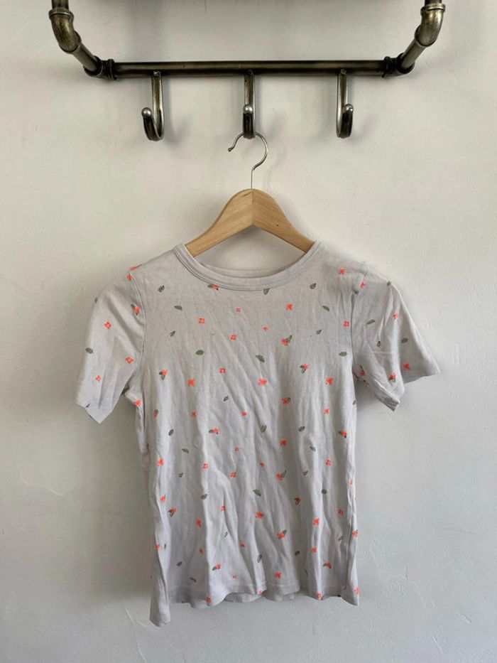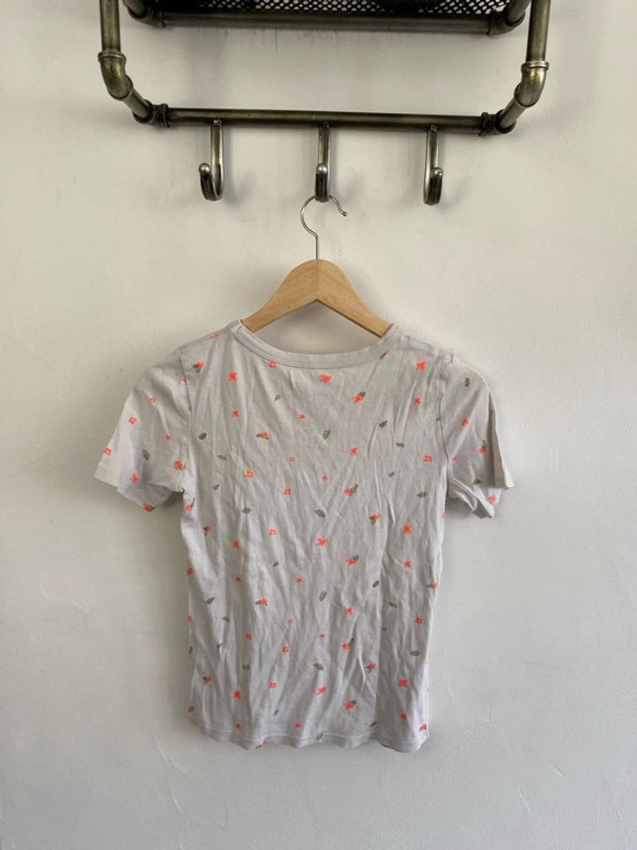 Teeshirt avec motif en fleurs oranges, blanc, porté quelques fois, aucune étiquette. Taille : aucune idée je dirais du S -> dimensions Marque : aucune idée Pour plus de renseignements, contactez moi en privé.