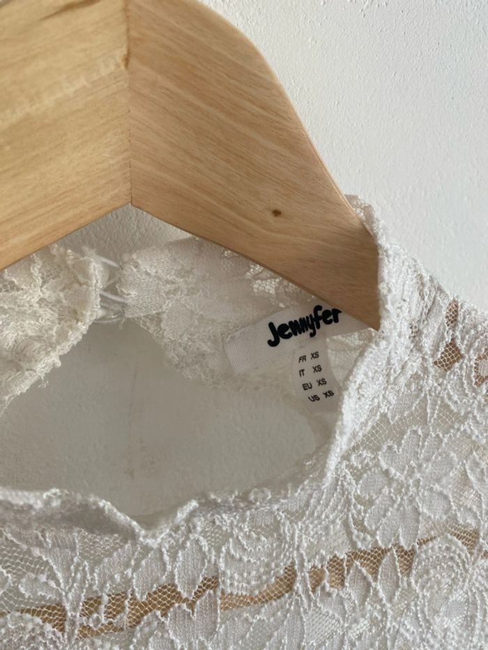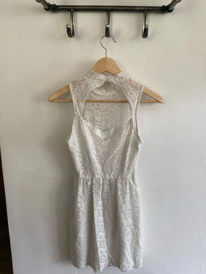 Robe blanche (la photo ne reflète pas bien le blanc), dos ouvert, avec dentelle, assez sympathique, porté quelques fois. Taille : XS Marque : Jennyfer Pour plus de renseignements, contactez-moi en privé.