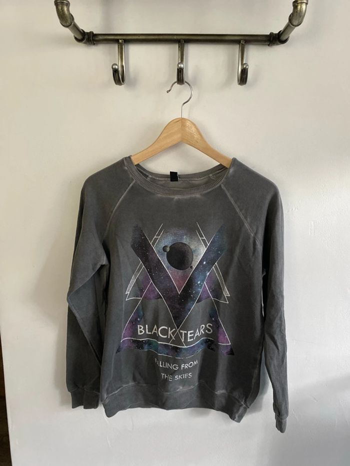 Pull léger avec imprimé de planètes, porté quelques fois, gris. Taille : inconnu, je dirais S -> les mesures sont prises. Marque : pimkie Pour plus de renseignements, contactez moi en privé.