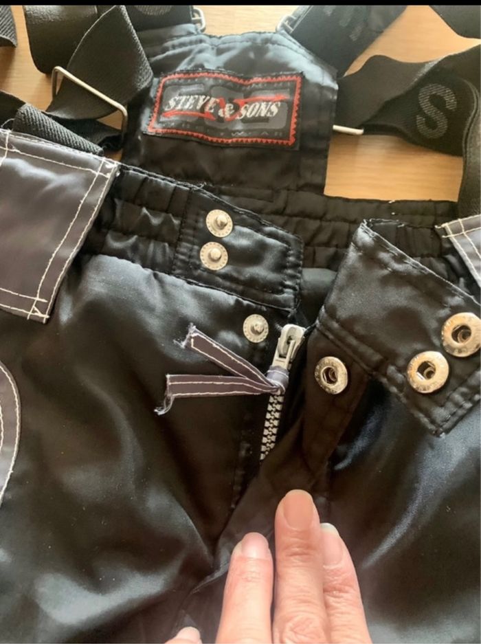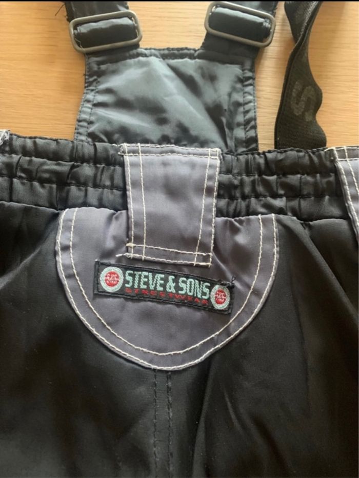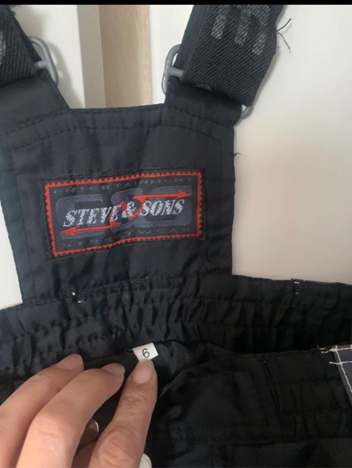 Pantalon de ski à bretelles Steve & Sons 6 ans. Coloris noir et gris. Très bon état.