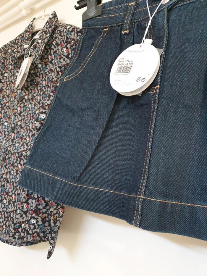 Ensemble Jupe Jean Chemise Liberty coton Petit Bateau 6 ans - photo numéro 4