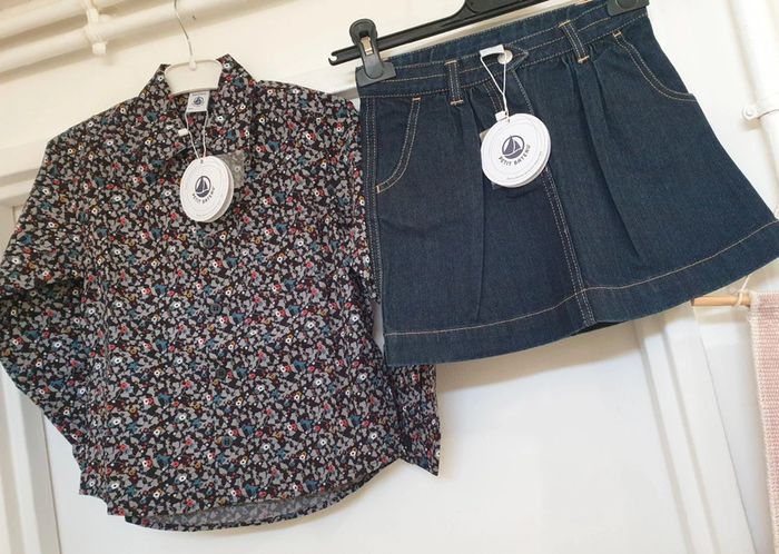 Ensemble Jupe Jean Chemise Liberty coton Petit Bateau 6 ans - photo numéro 1